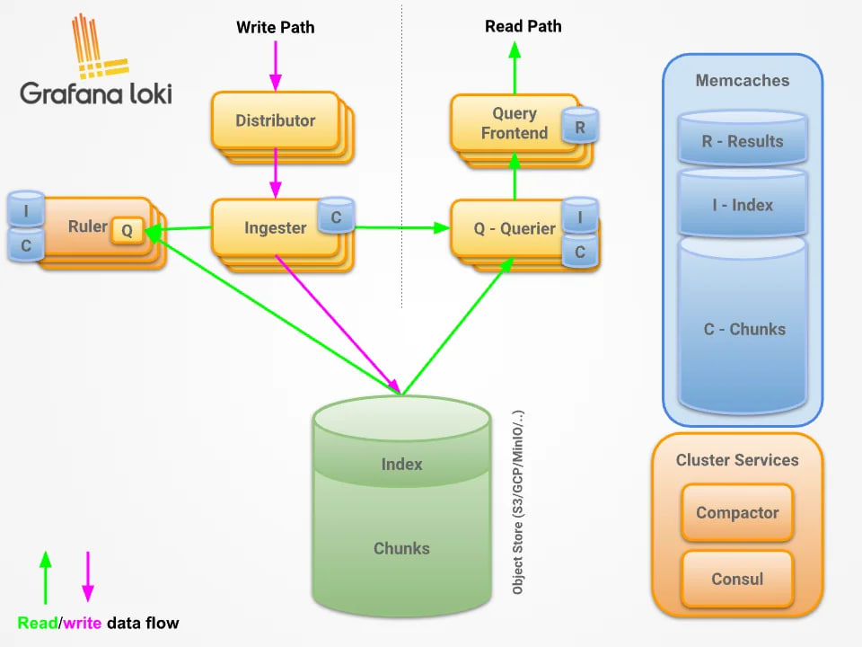 - Label-based indexing: Indexes metadata (labels) instead of full log content, saving storage and resources.